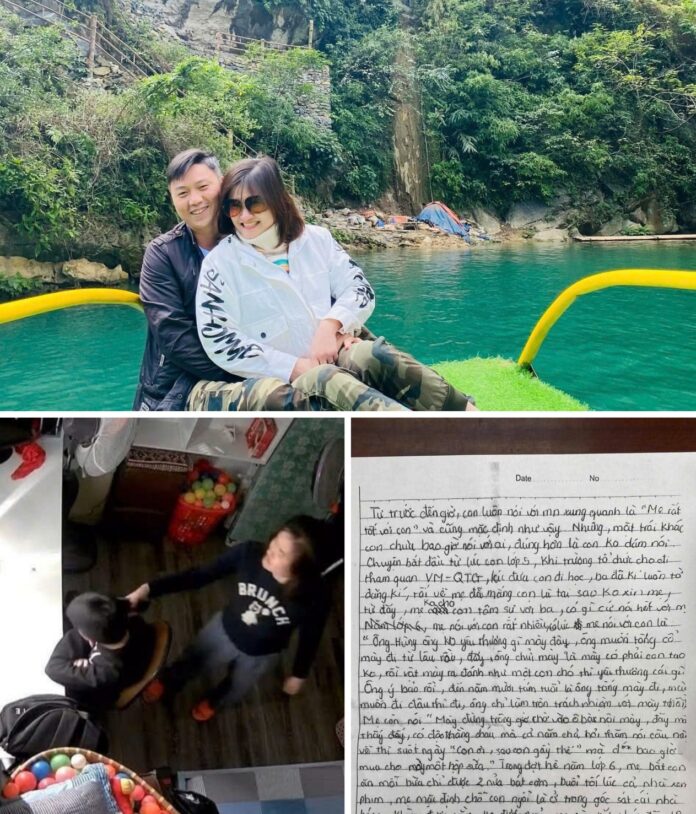 Theo đó, trong bức thư được cho là của bé trai, có đoạn viết: “Thời gian gần đây, mẹ thường xuyên đ:ánh con bằng điện thoại, chai thủy tinh, thìa, dao…”. Đi kèm, một đoạn video từ camera an ninh ghi lại cảnh một người phụ nữ dùng điện thoại đ:ánh vào đầu bé, bắt em đứng cúi mặt xuống bàn, không được ngồi ghế.