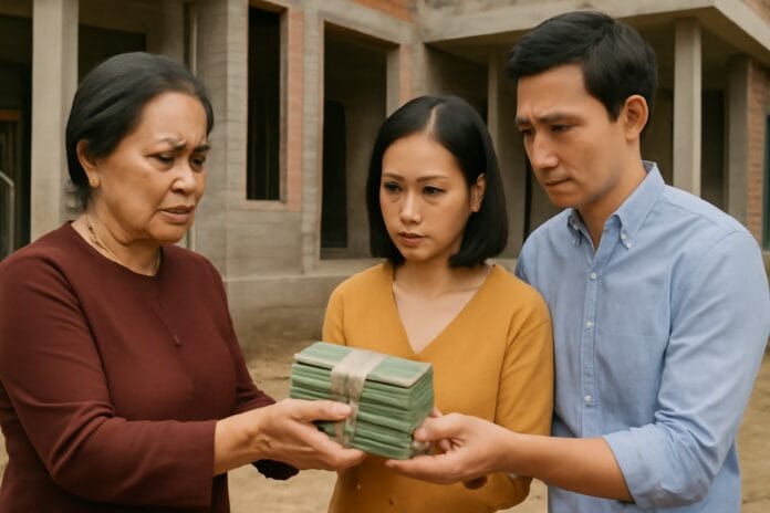 Bà cũng không quên kể công rằng chúng tôi mua được căn nhà đó tất cả là nhờ ông bà quyết và đưa thêm tiền. Thậm chí bà còn nhấn mạnh “100 triệu hồi đấy rất to”.