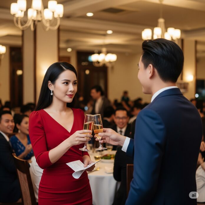 Bạn học cũ của anh — có người từng thích tôi, từng chứng kiến đám cưới tôi mặc váy trắng nắm tay anh — quay đi bối rối.