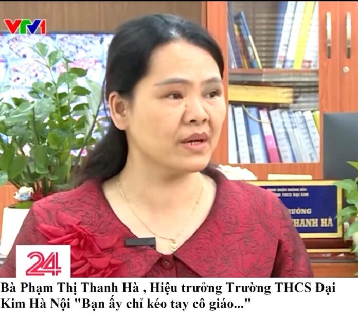 Bà Phạm Thị Thanh Hà, Hiệu trưởng Trường THCS Đại Kim (Hà Nội) phát biểu nguyên nhân vụ việc học sinh lớp 7 như sau: “Đồ chơi học sinh đem đi buổi thứ 2, cô giáo chủ nhiệm đã nhắc học sinh cất nhưng không cất mà đến ngày thứ 3 vẫn đem đến trường và khi nhìn thấy nguy hiểm cho học sinh… nên cô giáo thu của học sinh và HỌC SINH ĐÃ KÉO CÔ BÊN TAY PHẢI để giằng lại món đồ chơi này… bạn học sinh cũng nhận ra khuyết điểm của mình và cam kết không vi phạm nữa, cô giáo cũng nhân văn và cũng đã tha thứ cho học sinh”.