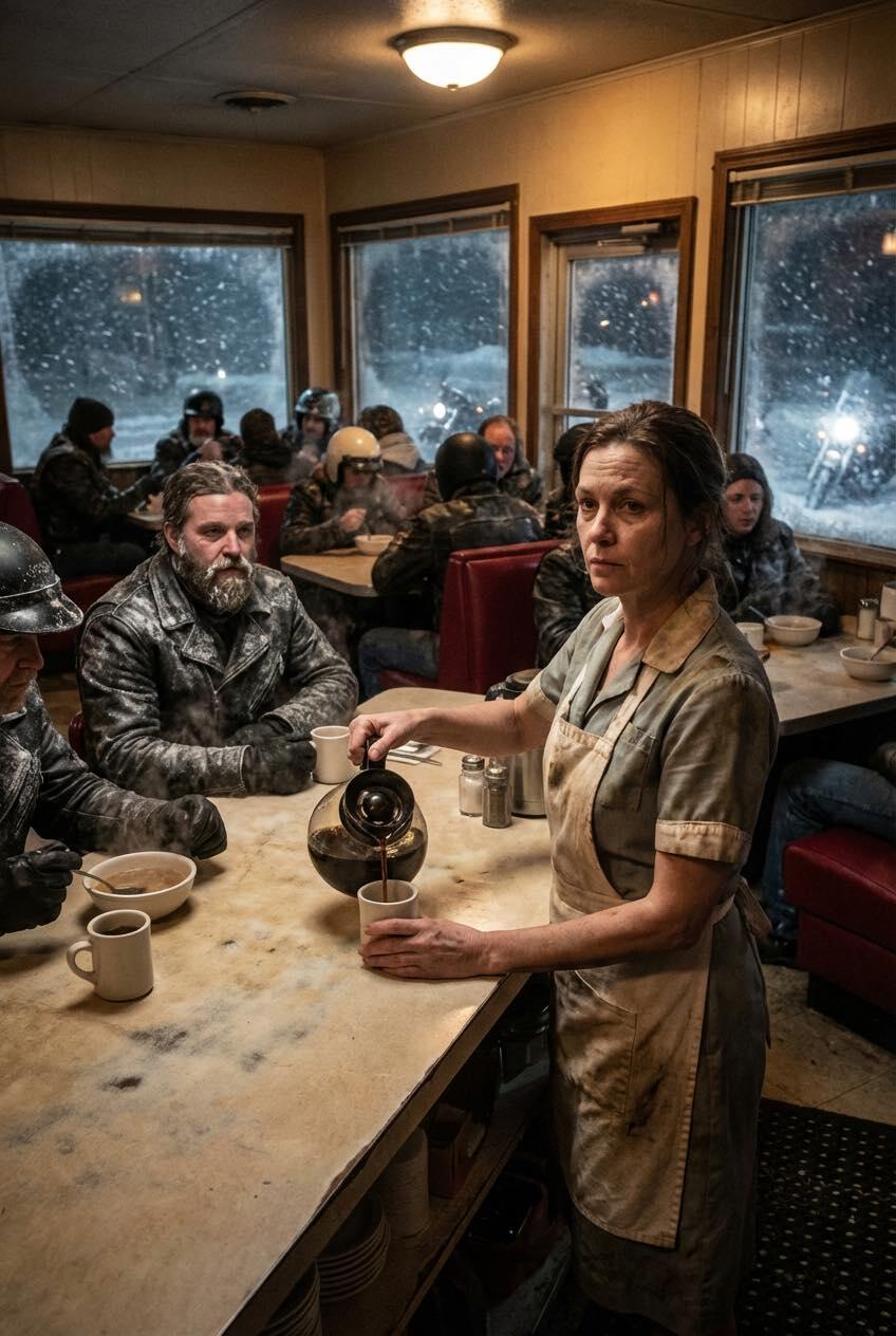 Twenty-five of them rolled into the parking lot, moving slowly, deliberately, as if speed itself had become the enemy, riders hunched low against the cold, leather jackets glazed with ice, faces hidden behind visors crusted white, and for a brief, irrational moment, Clara considered locking the door and pretending she hadn’t seen them at all.