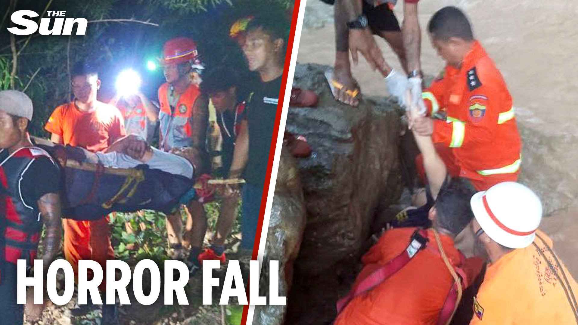 Two dead and American tourist among missing after group is dragged over edge of 400ft-waterfall & crashes into boulders