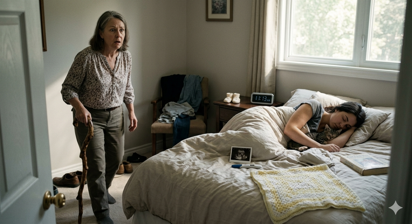 The daughter-in-law was still asleep at 11 a.m., and her mother-in-law stormed in with a stick to teach her a lesson — but what she saw on the bed froze her in place.